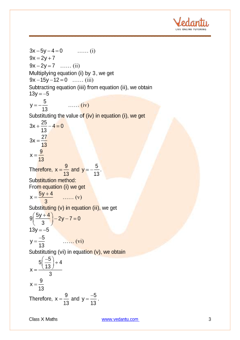 9x 3y = 9 where, x can have infinitely many solutions, (iv) 02x 03y = 13;13 Se obtienex = —,y = — 22 5 4 2x – 5y 6 x 3 8 Solución Primero se eliminan los denominadores Se obtienex = 4,y = –3 33 10 1 10 2x – 3y 5 11 6 x y 6 x 2 7 Solución Se resuelve por reducción;sumando las dos ecuaciones se elimina la incógnita y Se obtienex = 2,y = –3 6 Solución Se resuelve por sustitución despejando la incógnita y de la 2ª ecuación y sustituyendo